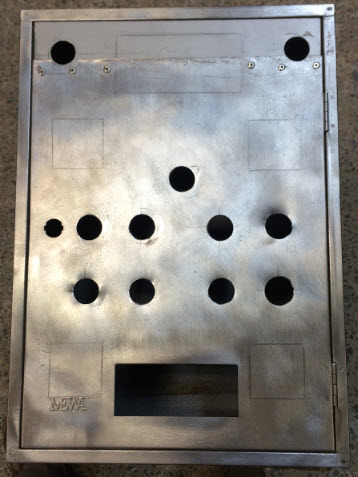 Next I sanded the new control panel and then laid out the components on the box - marking the locations for each.