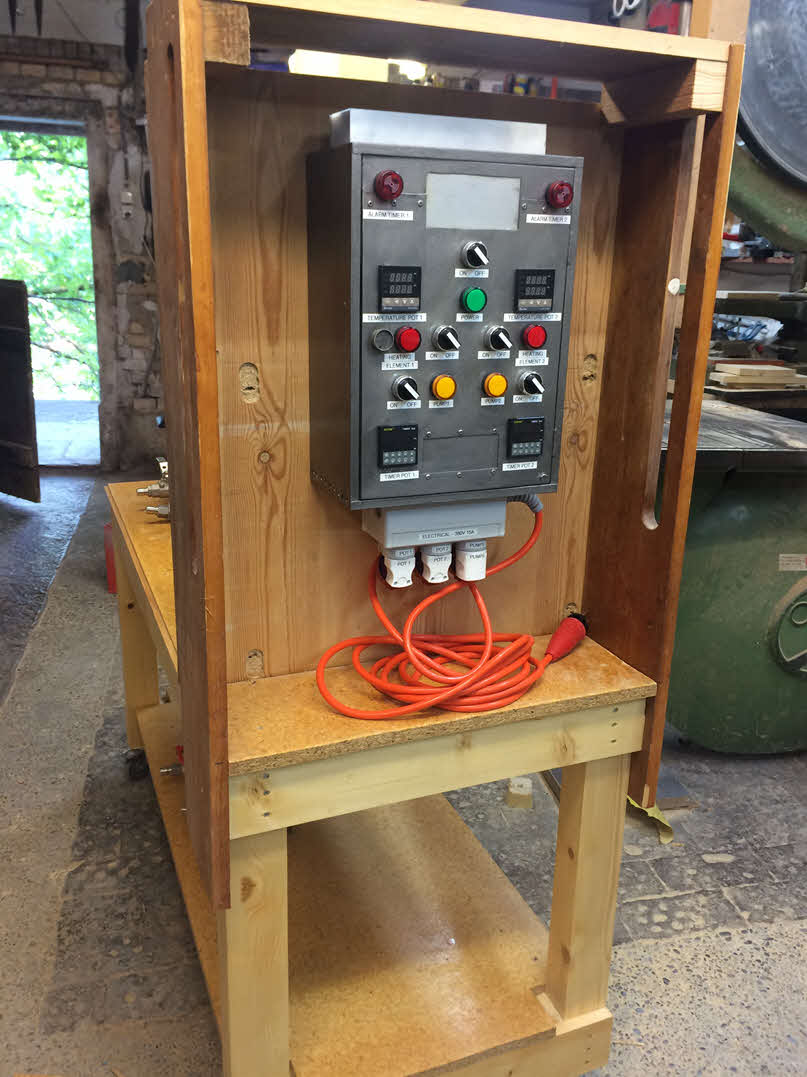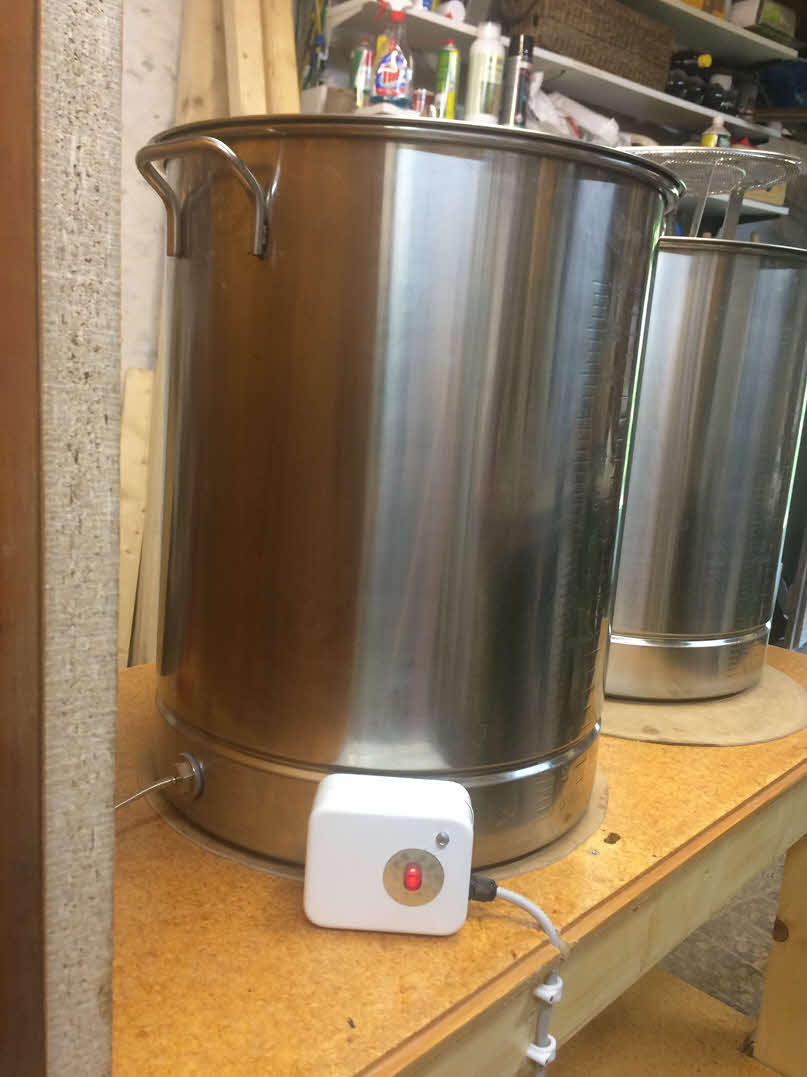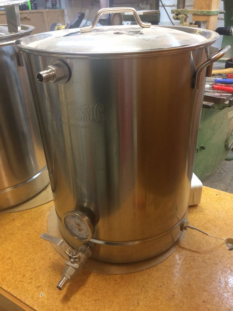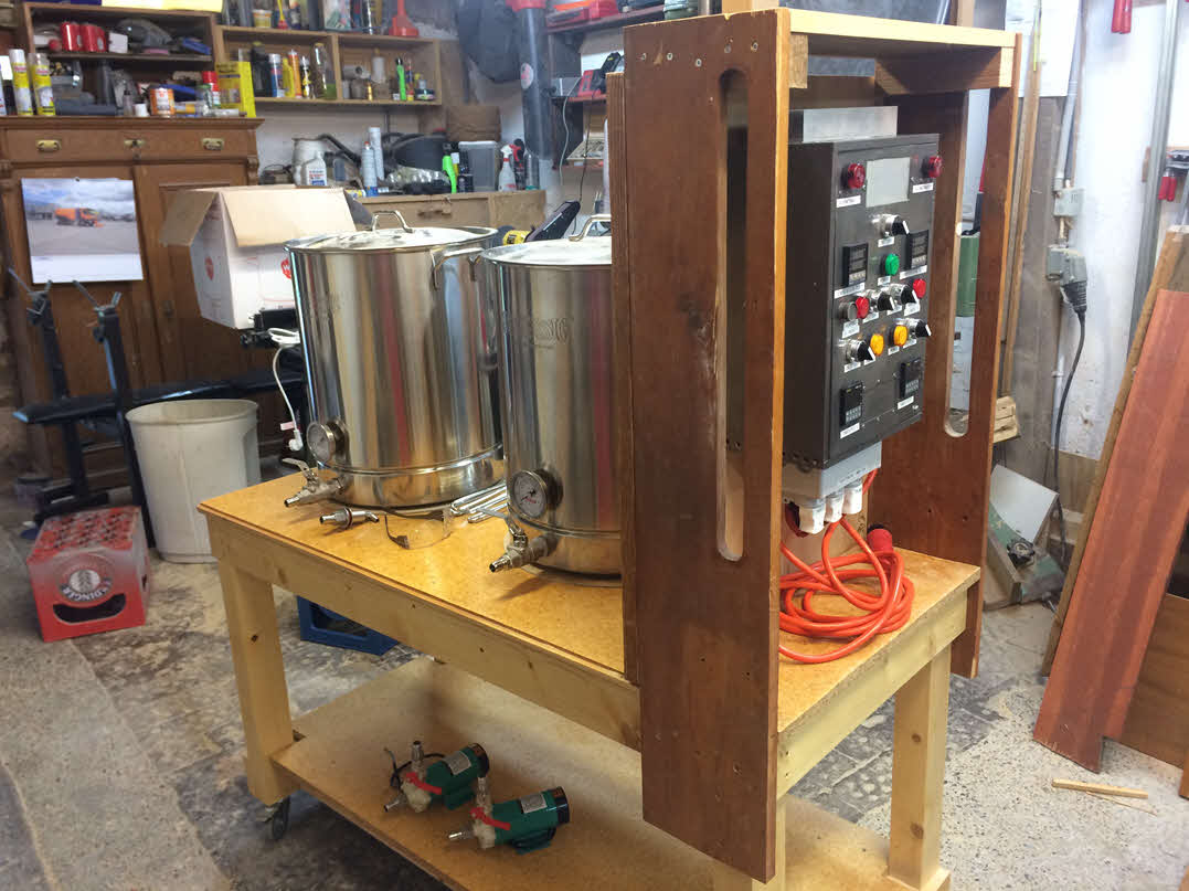 I put the control panel and pots on a rolling brewery cart I built from some old wood I had in the barn.
